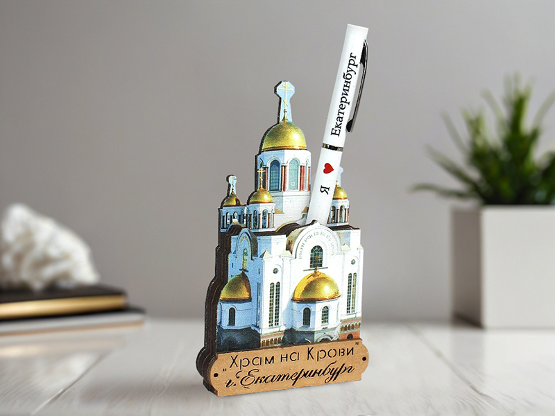 Сувенирная подставка для ручки "Храм на Крови", МДФ, УФ печать, 1шт.