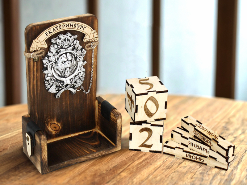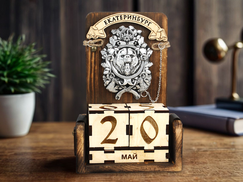 Вечный календарь "Екатеринбург" с медведем (11,5*6*18) Дерево, гипс, с обжигом, оформл., 1шт.