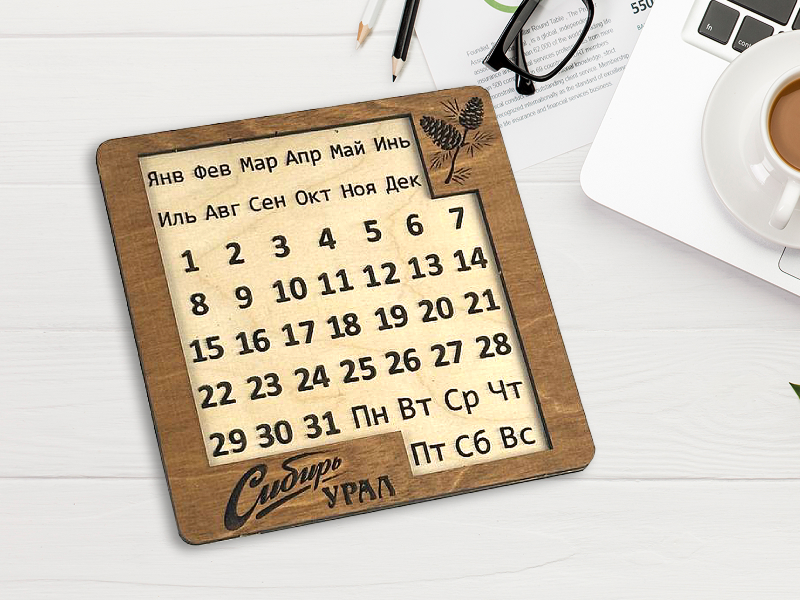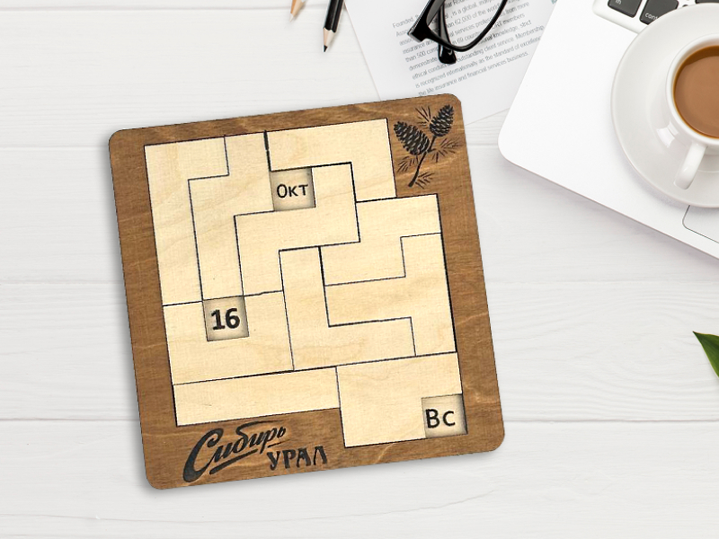 Вечный календарь-головоломка "Сибирь-Урал" (13*13) фанера, окраш. морилкой Дуб, 1 шт.